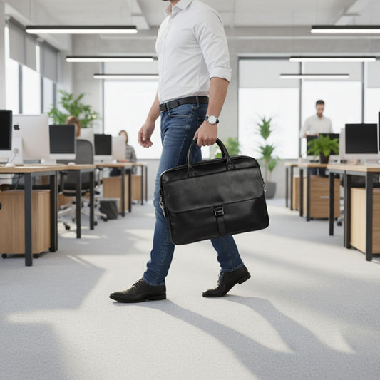 Leather Briefcase Messenger Bag for Men - Black